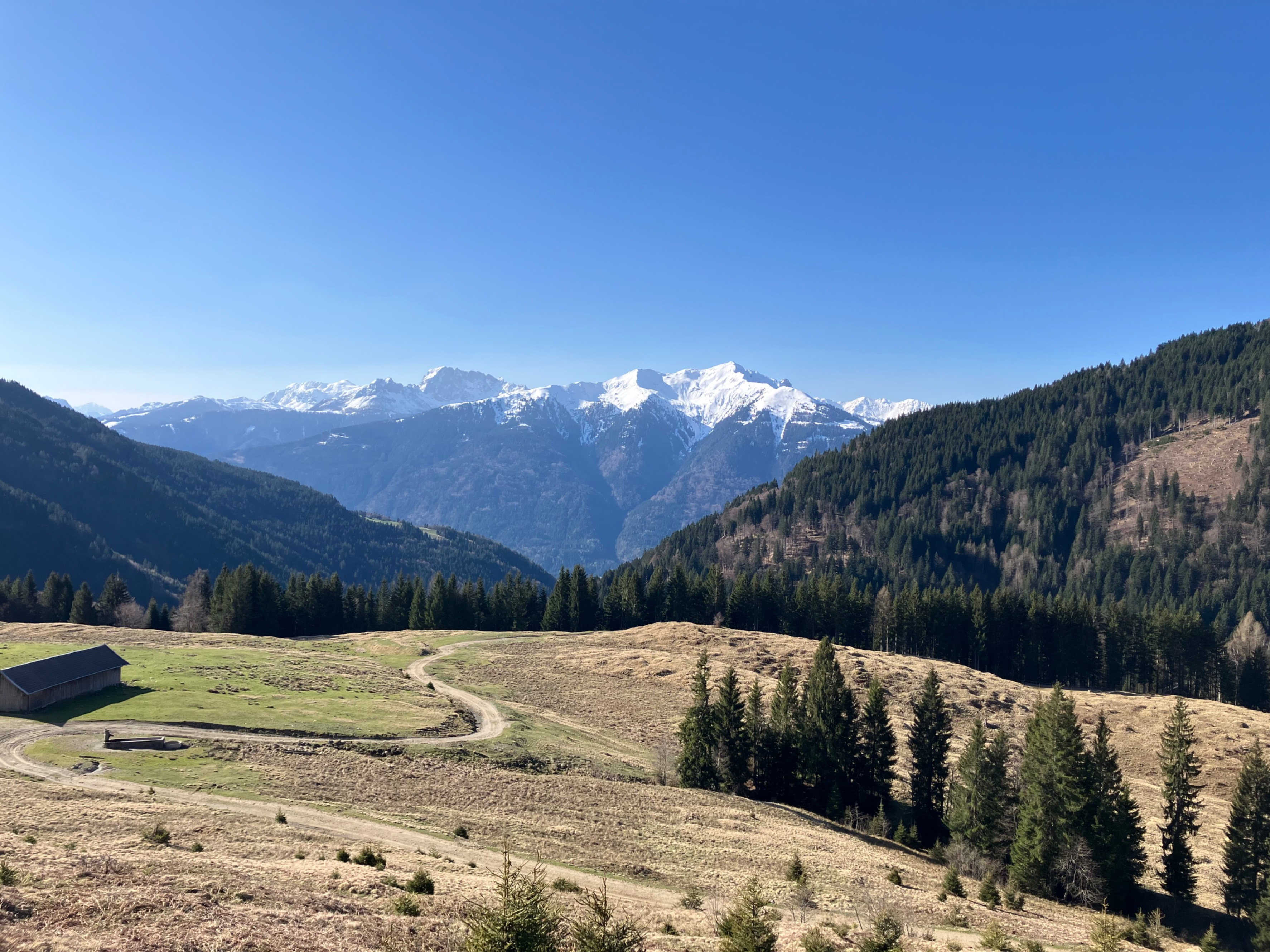 View over the Sauseng-Alm and the confluence of the Hammergraben and Patellgraben to the Hochwipfel.